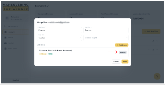 - Please do not delete the teacher completely. Instead, remove the licenses from their account and add the correct licenses.